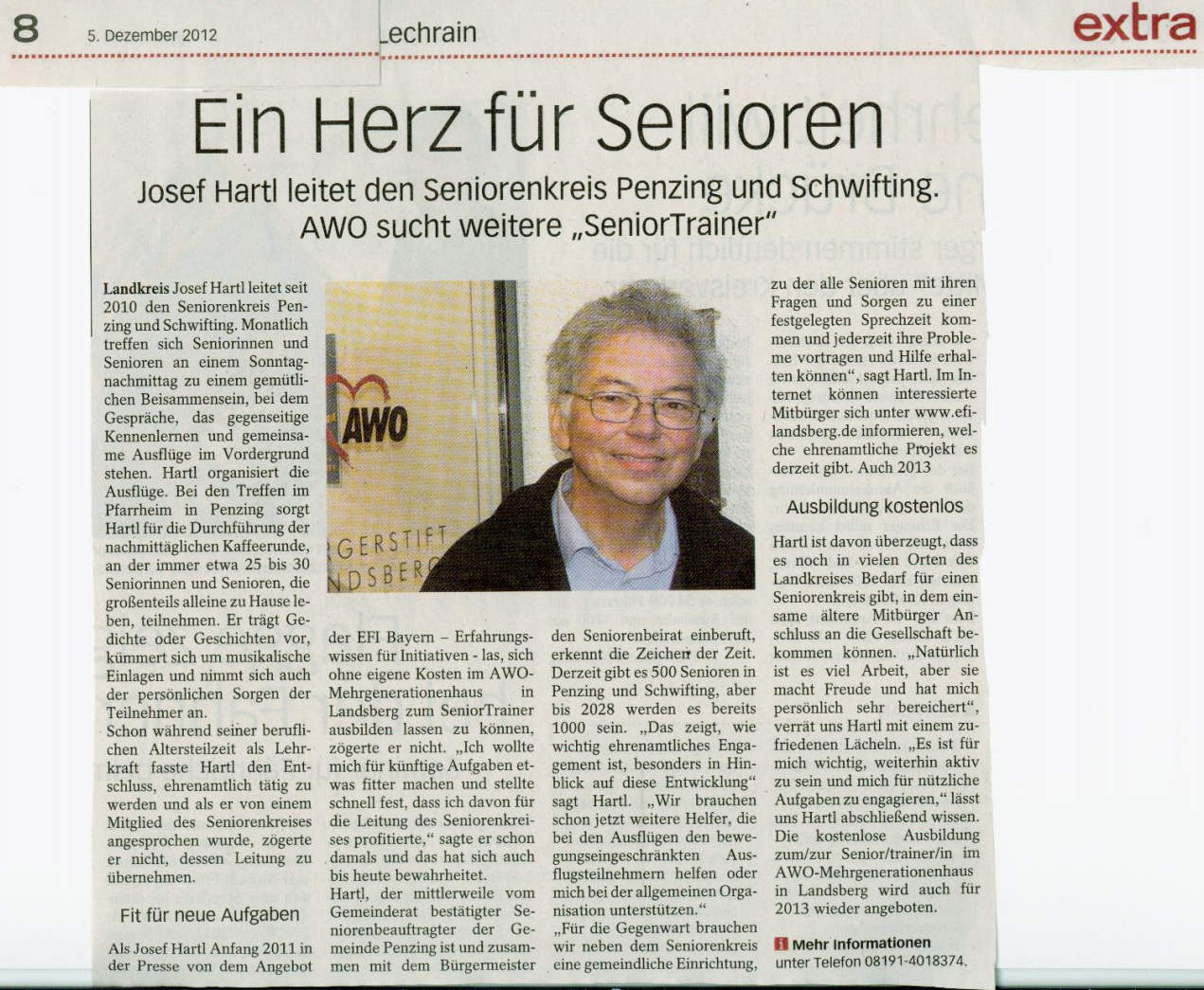 Josef Hartl leitet seit 2010 den Seniorenkreis Penzing und Schwifting. Monatlich treffen sich Seniorinnen und Senioren zu einem gemütlichen Beisammensein.